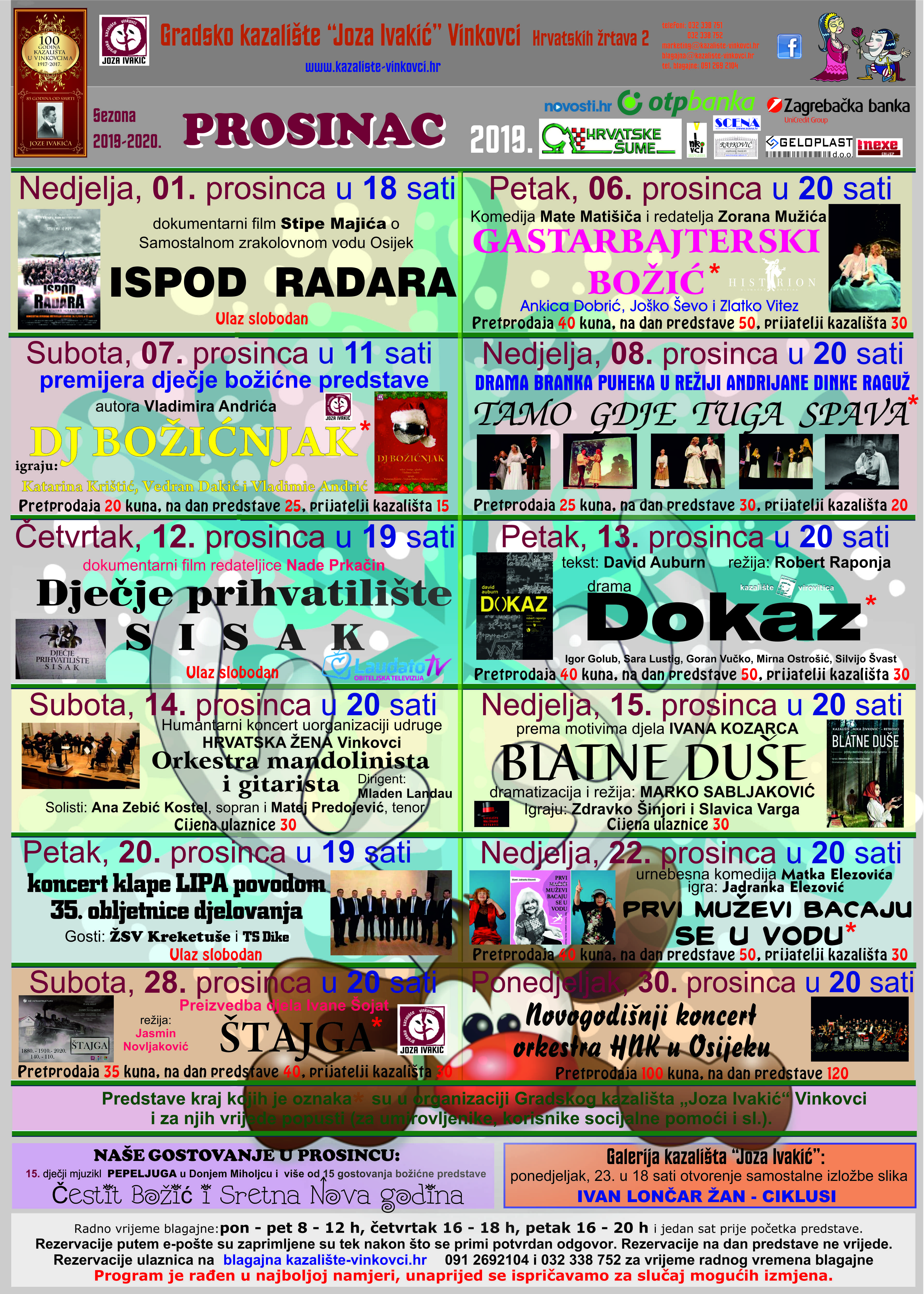 Gradsko kazalište „Joza Ivakić“ Vinkovci - program za mjesec prosinac
